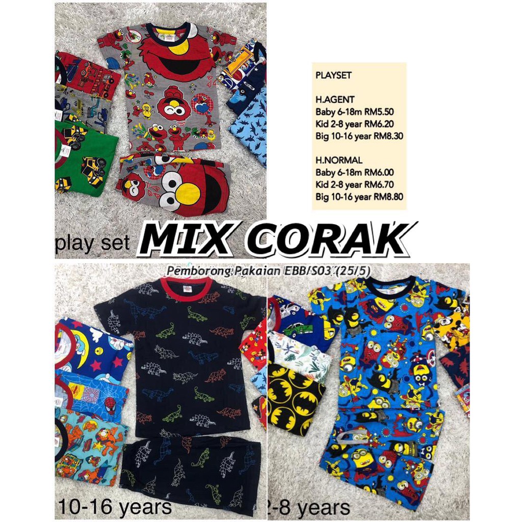 Borong Playset Mix Random Corak Pemborong Pakaian Kanak2 Borong Baju Budak Shopee Malaysia